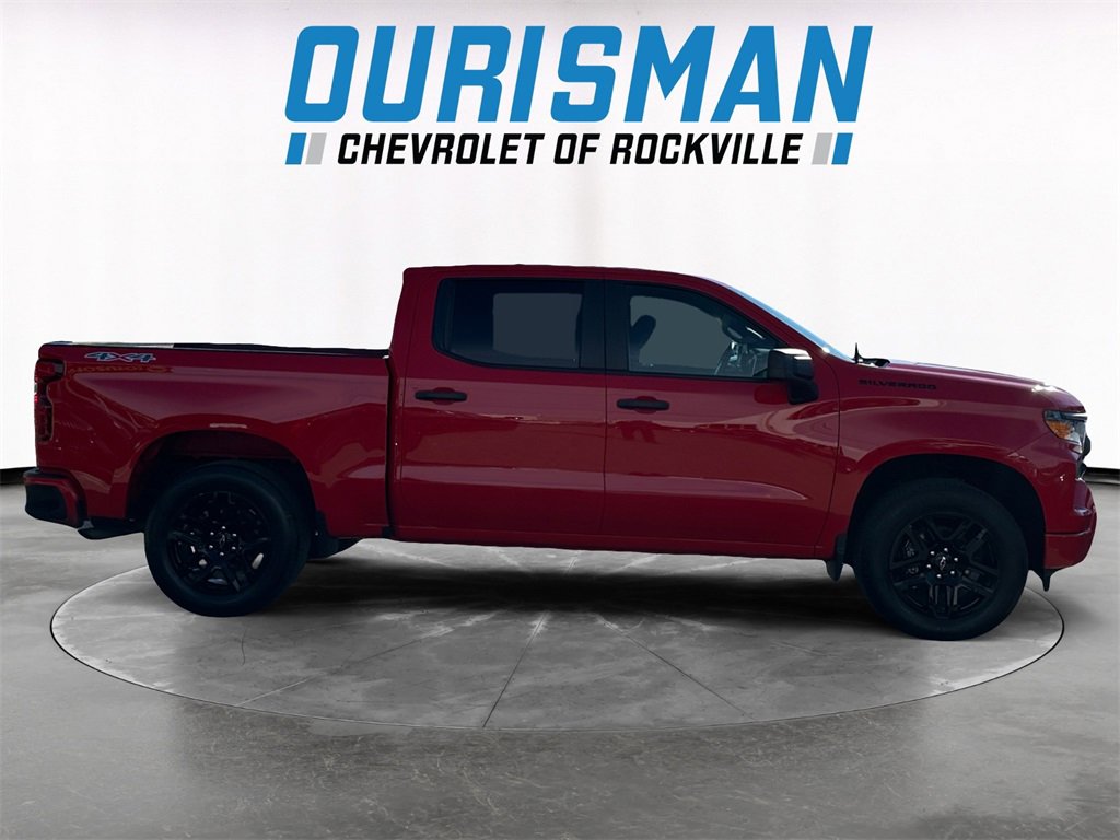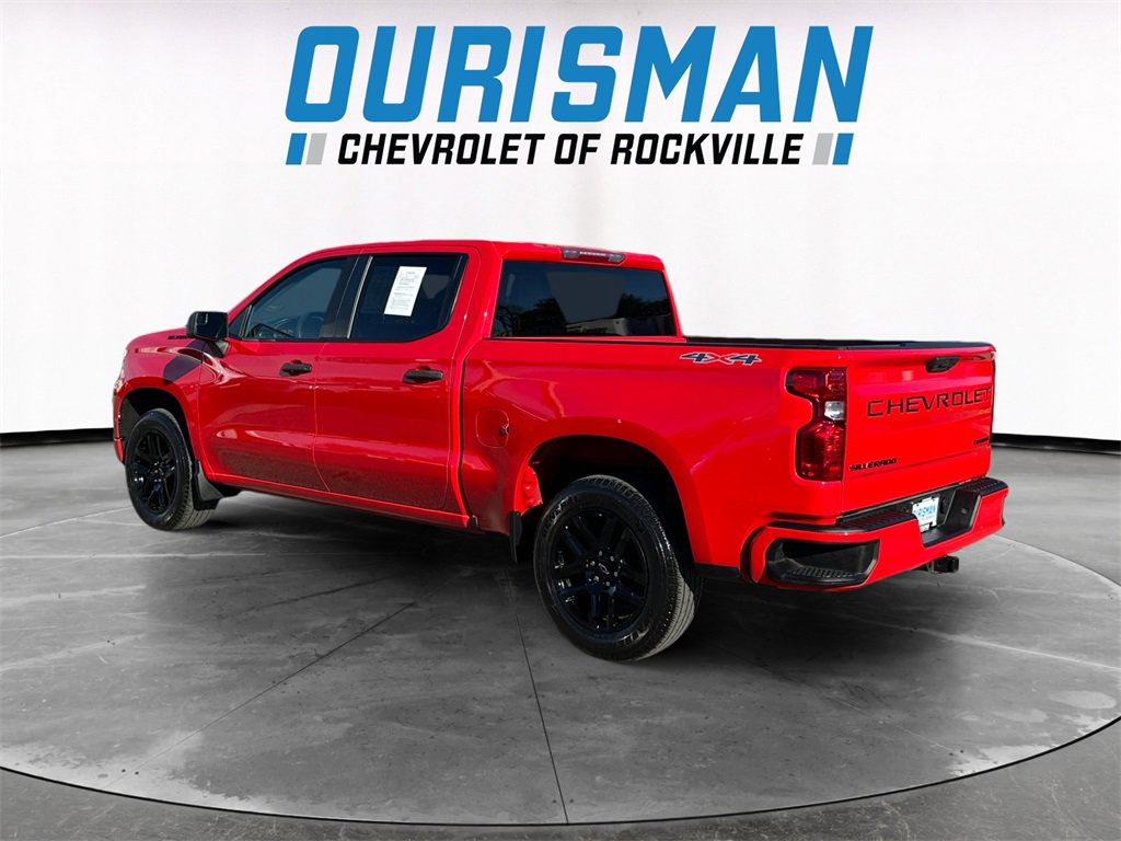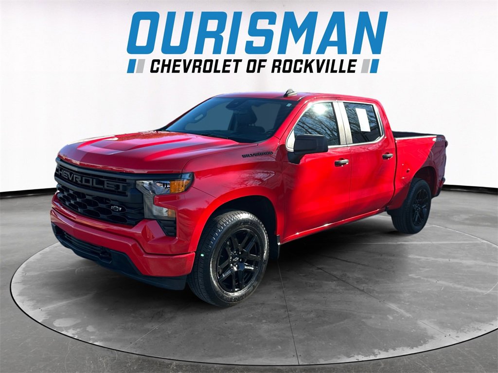 Clean CARFAX. 4D Crew Cab, 8-Speed Automatic, 4WD, Red Hot, Black Cloth, 10-Way Power Driver Seat w/Lumbar, 120-Volt Bed Mounted Power Outlet, 120-Volt Instrument Panel Power Outlet, 3.5 Monochromatic Display Driver Info Center, Black Name Plates (LPO), Bluetooth® For Phone, Chevrolet Connected Access Capable, Color-Keyed Carpeting Floor Covering, Compass, Custom Convenience Package, Custom Value Package, Dark Essentials Package (LPO), Deep-Tinted Glass, Dual Rear USB Ports (Charge Only), Electric Rear-Window Defogger, Electrical Steering Column Lock, Electronic Cruise Control, EZ Lift Power Lock & Release Tailgate, Front Frame-Mounted Black Recovery Hooks, Front Rubberized Vinyl Floor Mats, HD Rear Vision Camera, Hitch Guidance, LED Cargo Area Lighting, Manual Tilt Wheel Steering Column, OnStar & Chevrolet Connected Services Capable, Power Front Windows w/Driver Express Up/Down, Power Front Windows w/Passenger Express Down, Power Rear Windows w/Express Down, Preferred Equipment Group 1CX, Rear 60/40 Folding Bench Seat (Folds Up), Rear Rubberized-Vinyl Floor Mats, Remote Keyless Entry, Remote Vehicle Starter System, SiriusXM Radio, Standard Tailgate, Theft Deterrent System (Unauthorized Entry), Trailering Package, Wi-Fi Hot Spot Capable, Wireless Phone Projection. 2.7L Turbo 8-Speed Automatic